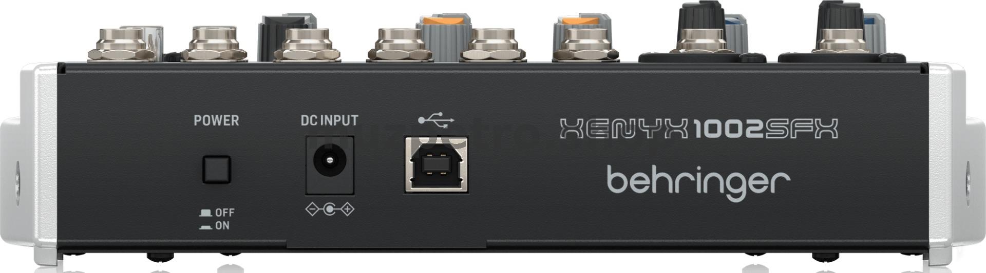 В качестве выходов предоставлена пара основных и мониторных линейных TRS (L-R), один посыл эффектов TRS и выход TRS под наушники. В дополнение представлен порт USB-B, парные входы/выходы RCA, фантомное питание 48 В и встроенная секция эффектов Klark Teknik (реверберация, дилей, модуляция и специальные эффекты, собранные в коллекцию из 100 готовых пресетов).